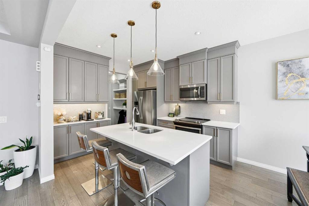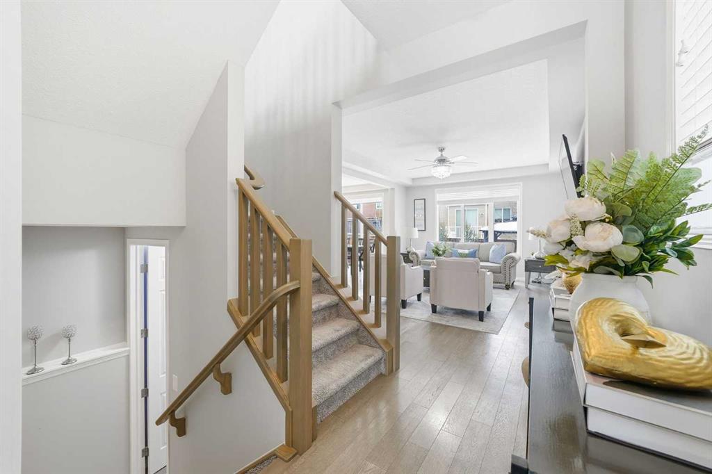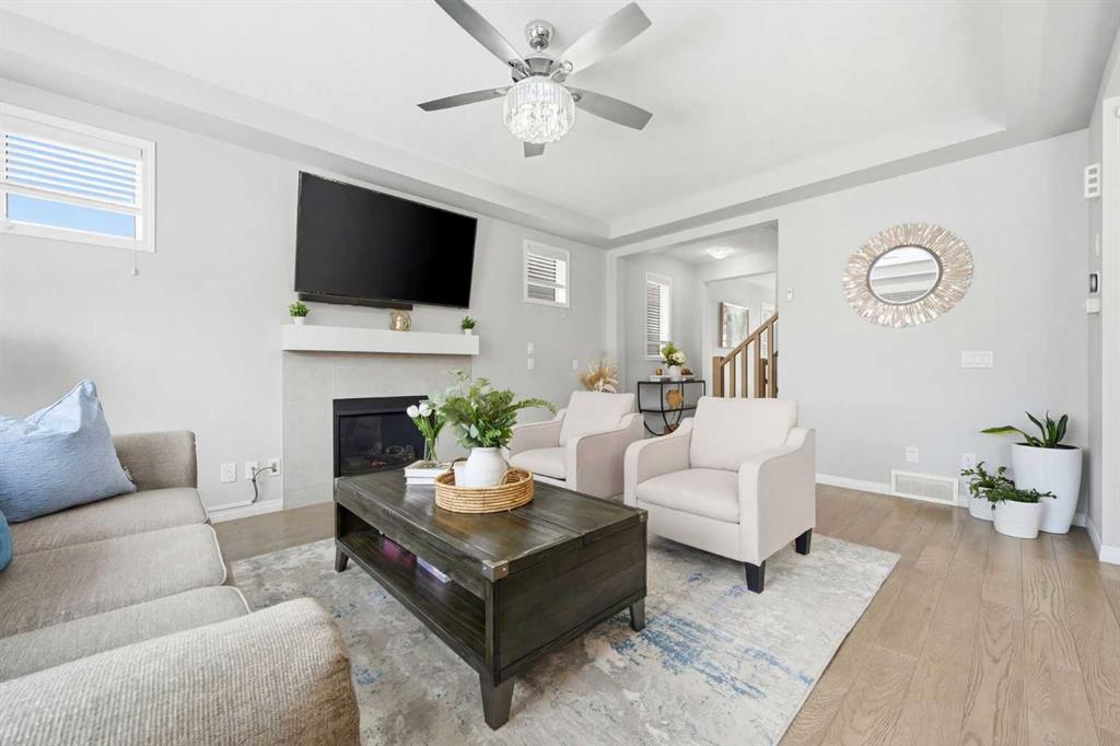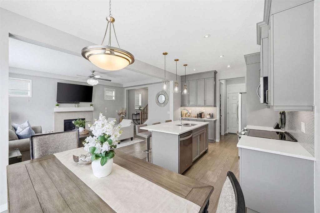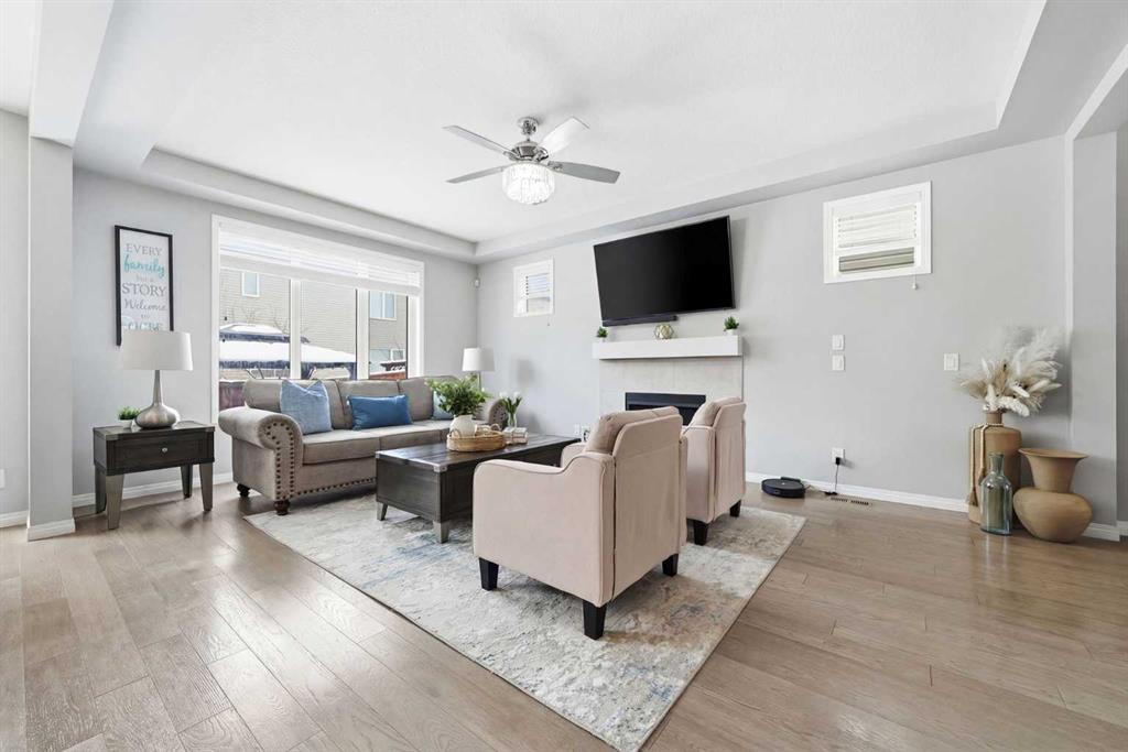 Located on a quiet street just steps from parks and scenic pathways, this beautifully upgraded family home offers nearly 2,800 sq. ft. of modern living space. The bright, open-concept main floor features hardwood flooring, 9’ ceilings, and upgraded stainless steel appliances including a spacious fridge and electric range, walk-through pantry, and large island. The main level also includes a spacious living room with gas fireplace, dining area overlooking the backyard, and a den/office. Upstairs offers 3 bedrooms, including a primary suite with walk-in closet and spa-like ensuite featuring a double vanity, walk-in shower, and soaker tub, along with upper laundry. The partially finished basement includes 2 bedrooms and 1 bathroom, with one bedroom and the bathroom fully completed, offering excellent potential for future development or extended family living. Enjoy the fully landscaped, private backyard with stamped concrete patio and gazebo, perfect for entertaining. Situated in the family-friendly South Windsong community close to schools, shopping, parks, and amenities. Move-in ready and beautifully maintained—this home is a must-see!!