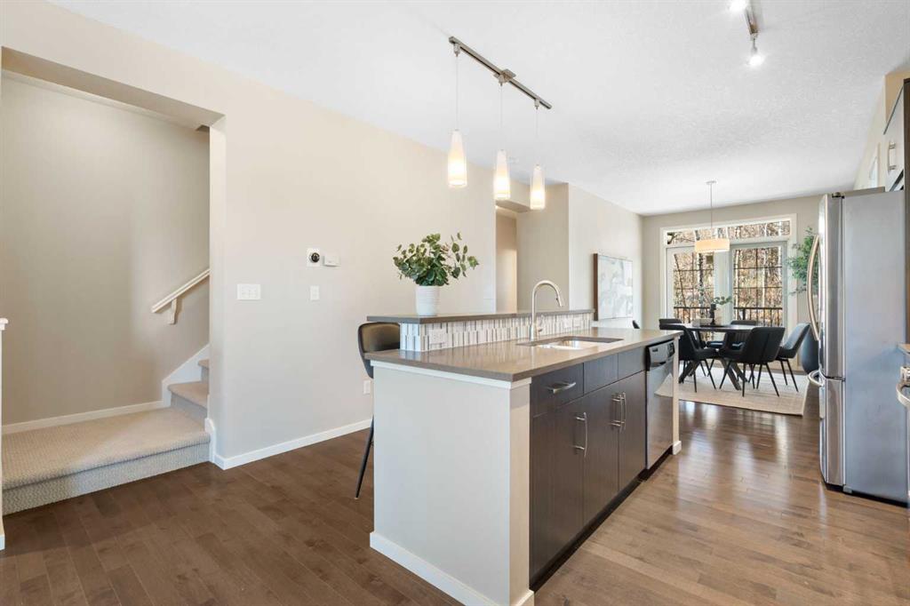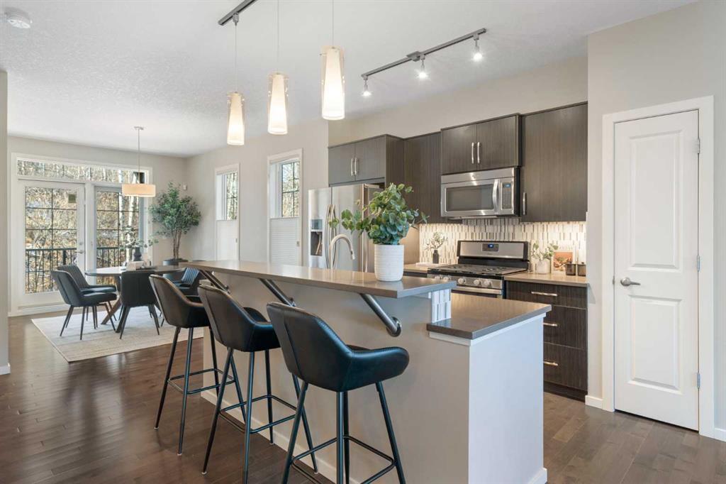 Backing directly onto the serene nature of the Aspen Grove, 420 Ascot Circle SW feels like a retreat, yet sits just minutes from schools, shops, transit, and Calgary’s most sought-after amenities. From the moment you arrive at this end-unit townhome in the heart of Aspen Woods, there’s a quiet sense of escape - an elevated lifestyle shaped by privacy, sunlight, and an effortless connection to nature. Step inside and the home unfolds across 1,569 sq ft of thoughtfully designed living space, each level giving you exactly what you need - function below, flow in the middle, and calm above. The ground floor sets the tone for convenience with a rare tandem double HEATED GARAGE, extra-deep and ready for two vehicles plus bikes, gear, a workshop, or the storage that makes day-to-day life feel organized. Upstairs, the main floor opens like a breath of fresh air. Sunlight pours in from both the front and back, washing across rich hardwood floors and a layout designed for connection. The living room feels warm and inviting, anchored by an electric fireplace that naturally draws people together. At the centre, an impressive kitchen becomes the heart of the home - oversized island, gas stove, stainless steel appliances, generous workspace, and a perfect flow for cooking, hosting, or simply gathering. Just beyond, the dining area opens to a private rear deck overlooking the nature reserve, where evening dinners, quiet mornings, and summer BBQs (with a built-in gas line) become part of daily life. A discreet powder room completes this level, adding comfort without interrupting the clean, open aesthetic. The top floor is all about rest, rhythm, and effortless living. Wake up in a primary suite that feels peaceful and elevated, with serene views of aspen trees, a walk-in closet, and a beautiful 3-piece ensuite with walk-in shower. Two additional bedrooms - one with its own walk-in closet - offer flexibility for kids, guests, or the perfect home office. A full 4-piece bathroom, upstairs laundry, and thoughtful hallway storage make this level feel remarkably efficient, with not a square foot wasted. Every detail here was chosen for modern comfort: air conditioning for warm summer days, hardwood where you want durability, plush carpet where you want warmth, and an end-unit orientation that keeps the home bright, quiet, and private. Beautifully maintained, intelligently designed, and set against one of Aspen’s most peaceful natural backdrops, this home invites you to step into a lifestyle that balances convenience with calm, openness with privacy, and everyday living with a touch of luxury. Come experience how effortlessly life unfolds at 420 Ascot Circle SW - your next chapter starts here.