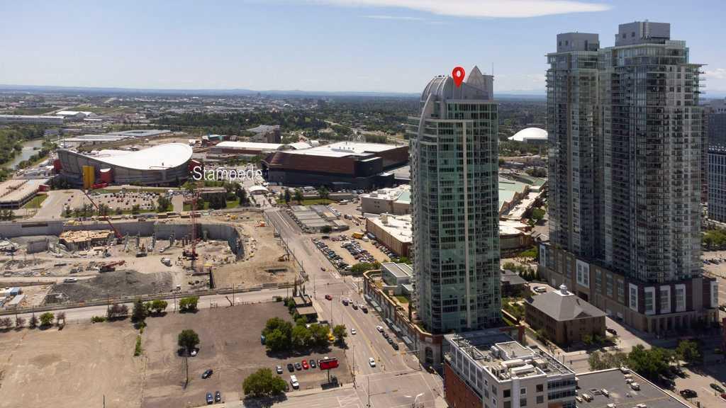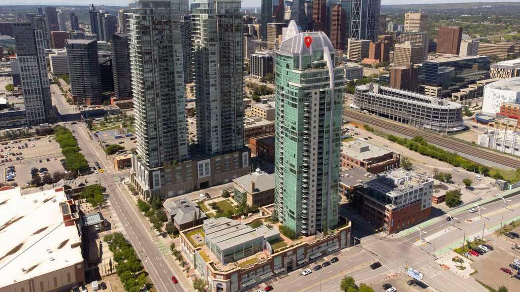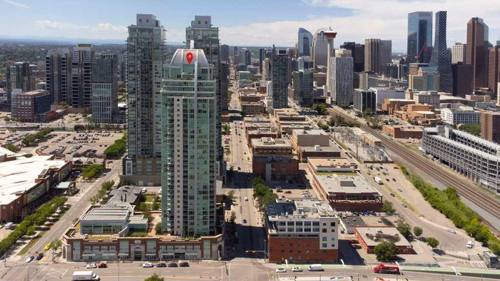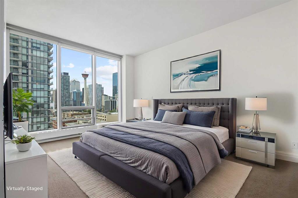 Welcome to luxury living in the iconic Arriva tower located in the arts and entertainment district! This move-in-ready 2 bed, 2 bath, 2 parking stall, corner unit boasts panoramic city views and an abundance of natural light through its floor-to-ceiling windows, and is available for immediate possession. Positioned on a high floor, this modern space is designed for both comfort and style, with an open-concept layout that takes full advantage of its prime corner location. The sleek contemporary kitchen is a chef’s dream, featuring quartz countertops, a gas cooktop, integrated refrigerator, built-in oven, and ample cabinetry that keeps the look clean and sophisticated. Entertain in the spacious dining and living area while soaking in Calgary’s skyline views from every angle. Both bedrooms are generously sized, offering excellent separation for privacy. The primary suite is a true retreat with a walk-through closet and a large spa-inspired ensuite that provides extra counter space and a deep soaker tub. The second bedroom is ideal for guests, a home office, or a roommate, complete with its own full bathroom just steps away. Convenience is maximized with in-suite laundry, two titled underground parking stalls, and a separate assigned storage locker — a rare find in urban living! The Arriva is renowned for its top-tier amenities, including a beautiful rooftop patio to enjoy summer evenings, a stylish guest suite for out-of-town visitors, a well-appointed party room, and professional concierge service that adds an extra layer of comfort and security. Situated in the heart of the Beltline, you’re just steps away from Stampede Park, the Saddledome, trendy cafes, renowned restaurants, and the vibrant arts and entertainment scene that downtown Calgary has to offer. Whether you’re a professional seeking a lock-and-leave lifestyle or looking for a spacious urban home, this stunning corner unit is ready to welcome you home. Don’t miss your chance to own in one of Calgary’s most sought-after high-rises — book your private tour today!