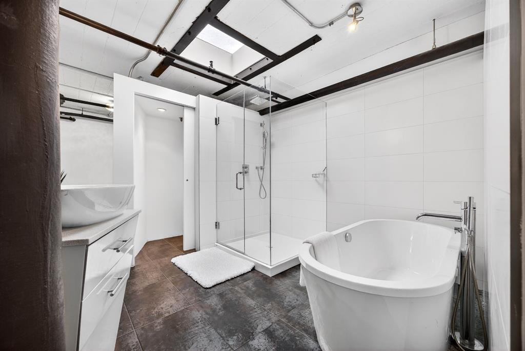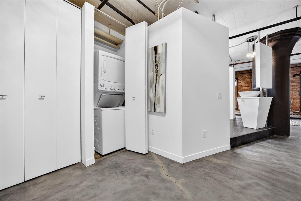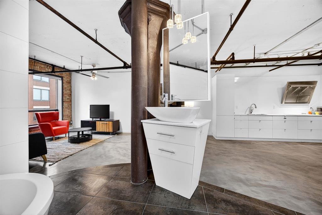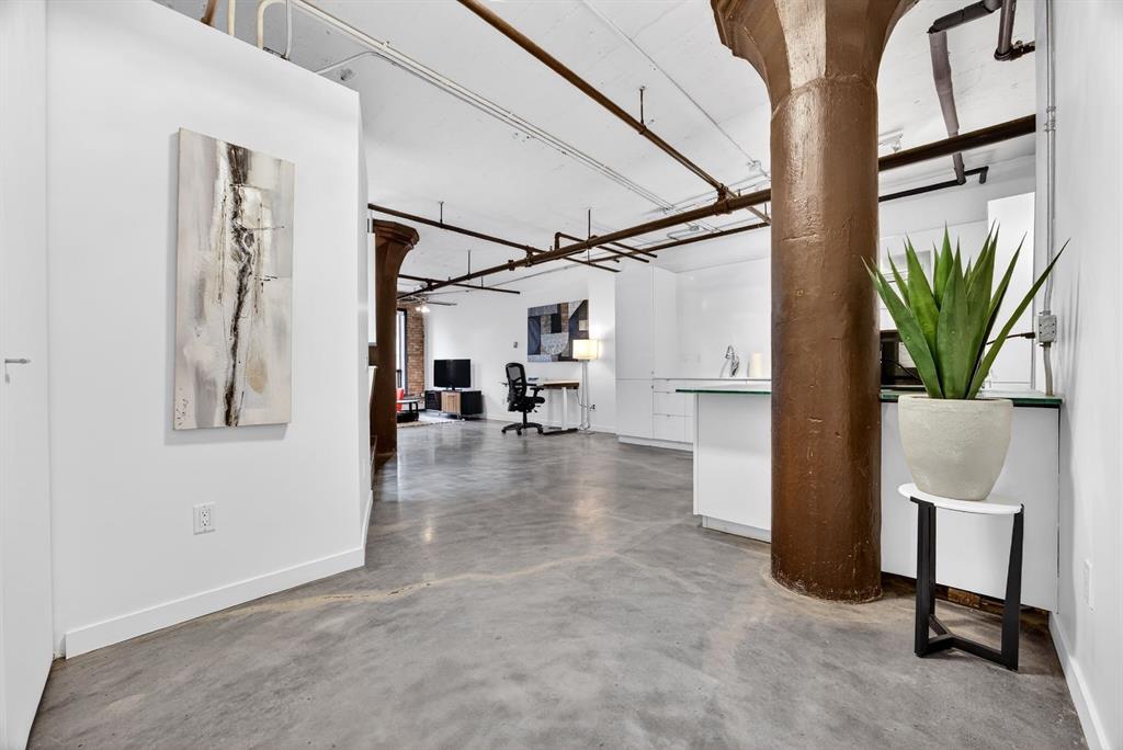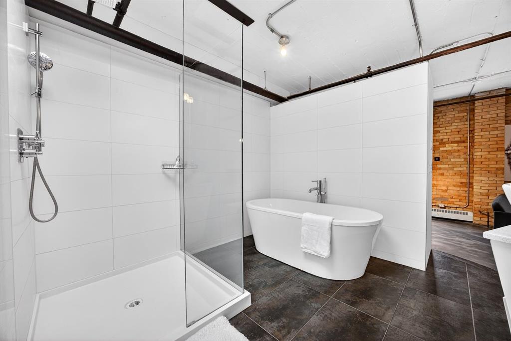 Welcome to the Lewis Lofts! This building gives New York vibes and a rare opportunity to own a piece of history in this 1911 converted Lewis Stationary building. One of Calgary’s only true “hard lofts” a provincial Class "A" Heritage Building that was converted in 1995 to residential condos. This TOP FLOOR penthouse unit features open concept living with polished concrete flooring, original brick feature walls, open industrial ceilings, and large fluted columns that give the property a ton of character. Gorgeous kitchen with sleek white cabinetry, brand quartz counters, undermount sink, built-in integrated dishwasher and fridge, and island with custom glass counter and matching shelving unit. Open to the main area with lots of space for dining, living room, and office area. Remodeled open concept bathroom with floor to ceiling tile, free-standing soaker tub, walk-in glass shower, and separate water closet. Bedroom area with garden door out to the top floor West facing balcony with High Park and DT views. In suite laundry and a direct vent outside with air conditioning unit included complete this amazing space. The unit comes with heated underground parking, storage locker, and the building features a huge common area patio with gazebo, BBQs, and lawn furniture, a great spot to hang out with friends on summer days! All located in the heart of the Beltline across the street from Vintage Chop house and walking distance to all the bars, restaurants, shops, DT Core, Vibrant 10th and 17th Avenue. Convenient close access to the +15 walkway, Scotiabank Saddledome, Stampede Park, and so much more! Don’t miss your chance own in one of Calgary’s most sought after historic landmarks, with timeless architecture and character that will be the envy of all your friends!