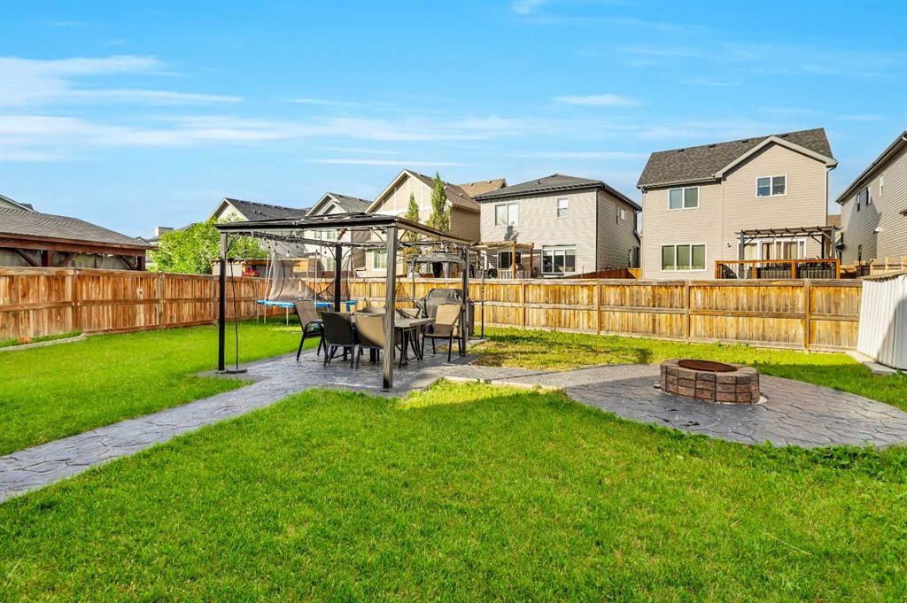 The open concept floor plan is sure to impress and is great for entertaining, large living room with center gas fireplace which is perfect to cozy up to any cold winter nights. The kitchen sits adjacent to the living room and features dark stained cabinets, quartz countertops, stainless appliances and a perfect sized island for gathering, good sized dining nook that is perfect for family dinners, and has double sliding doors that leads to your landscape retreat, park sized backyard, that is complete with stone patio and firepit, for enjoying warm summer nights.