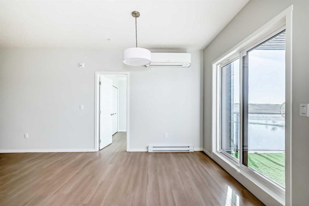 Welcome to Riverstone Manor in Cranston! Discover luxury condo living in the heart of one of Calgary’s most desirable southeast communities — Riverstone in Cranston. This beautifully designed southwest-facing unit offers 3 bedrooms, 2 bathrooms, and over 1,187 sq. ft. of stylish living space. Step inside to an inviting open-concept layout with 9-ft ceilings, Low-E triple glazed windows, and modern finishes throughout. The chef-inspired kitchen showcases full-height cabinetry, quartz countertops, stainless steel appliances, pot & pan drawers, and an oversized island perfect for entertaining. The bright living and dining areas open onto a sunny south-facing balcony with unobstructed views of the scenic wet pond and a BBQ gas line for outdoor enjoyment. The spacious primary suite features a walk-in closet and a luxurious ensuite with dual vanities and a stand-up shower. Two additional bedrooms offer versatility for guests, family, or a home office. Additional highlights include in-suite laundry, a titled underground parking stall, bike storage, and Hardie board siding for long-lasting quality. Located just steps from the Bow River pathways, parks, and Cranston Resident’s Association amenities, this pet-friendly complex combines nature, convenience, and elegance — all in one perfect package.