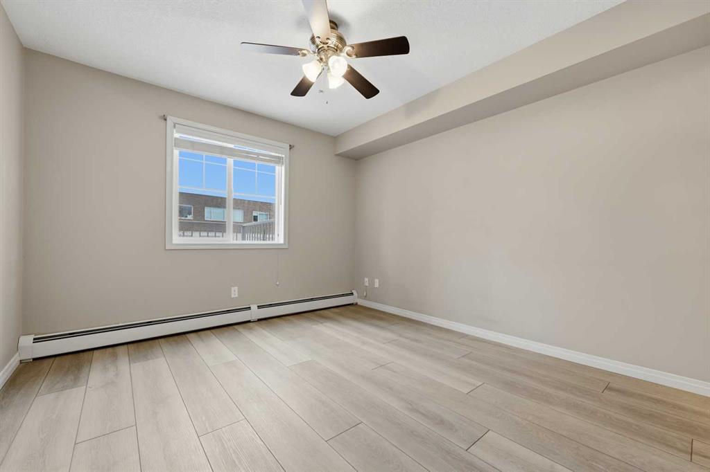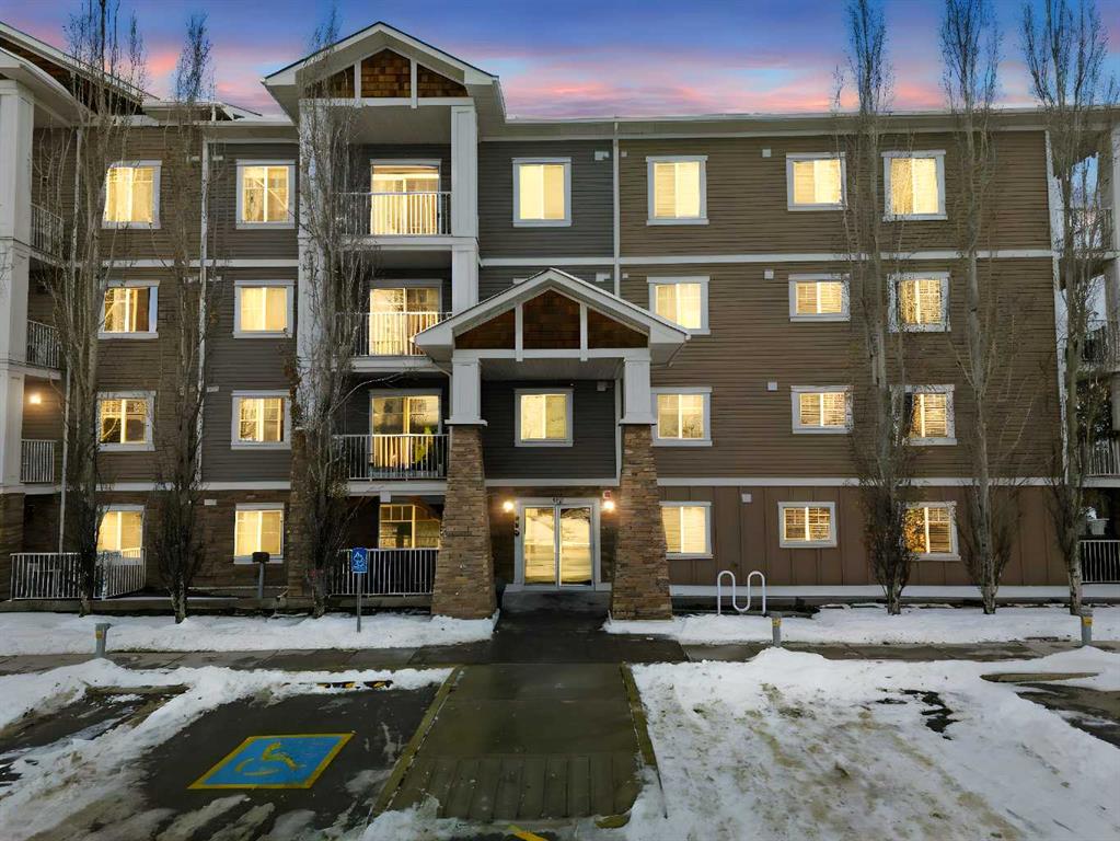 Discover unbeatable convenience in this bright and well-kept 2-bedroom, 2-bath main-floor unit in Cranston Place: a rare street-level patio entrance gives this condo the feel of a detached home. The spacious patio opens directly to the sidewalk and is conveniently located right across from Dr. George Stanley School (Grades 5–9), making this a fantastic fit for families with older elementary or junior-high children. Inside, the open-concept layout is warm and inviting with quartz countertops, stainless steel appliances, ample cabinetry, and luxury vinyl plank flooring throughout. The living room features a cozy gas fireplace; the primary bedroom boasts a walk-in closet and private ensuite, while a second bedroom and full bath offer ideal separation for guests, roommates or a home office. Additional conveniences include a generous in-suite laundry room, titled underground parking, and an assigned storage locker. The location offers quick access to local amenities: nearby green spaces, parks, walking paths, shopping, transit connections, and major roadways. Well-managed and low-maintenance, this complex delivers exceptional value in one of Calgary’s sought-after communities. Don’t miss the opportunity to own a rare ground-floor home-style unit in Cranston with true street access and unbeatable convenience.
