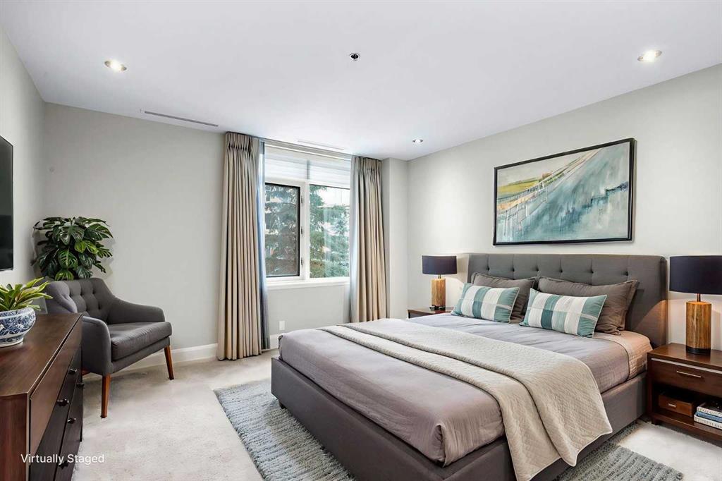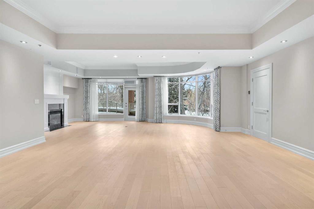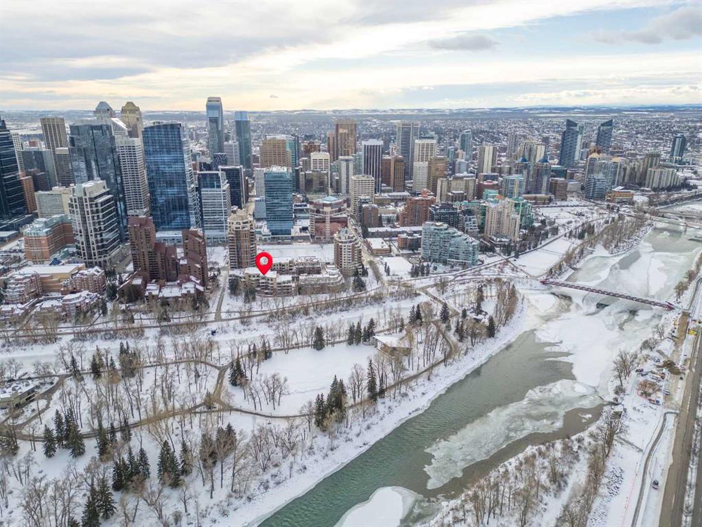 For those who value excellence, this distinctive executive residence in the Princeton Grand, a name synonymous with exclusivity, privacy, and luxury, is set amidst the most desirable residential enclave in Eau Claire. Your lifestyle will appreciate the opulent convenience of a private in-suite elevator coupled with exceptional amenities including 24 hour dedicated concierge, temperature controlled wine room with private storage lockers & tasting room, events area with full kitchen, TV’s and terrace, 2 private guest suites, a fully equipped fitness centre, yoga centre, steam room, dry sauna, showers, change room with lockers, full kitchen & bathroom, full service U/G car wash bay, bicycle storage, and a separate freight elevator. The beautifully manicured grounds create a private park-like setting, nestled along the south bank of the Bow River next to beautiful Prince's Island Park and incredible Pathway System! Walking distance to office towers, shopping, entertainment, restaurants, +15 skywalk system, transportation and the LRT, Peace Bridge, Kensington Shops and Calgary's vibrant City Center. Presenting a rare offering of 2892 sq.ft. of harmoniously appointed living space displaying the highest level of craftsmanship and luxurious interior tailoring, with pride of ownership complimenting the timeless prairie palette that flows seamlessly throughout the integrated floor plan that embraces the stunning backdrop of the Bow River. This exceptional luxury residence features a private elevator for the ultimate in convenience which opens to your stylish and spacious foyer, and then presents an exceptionally open entertaining floor plan, large floor to ceiling windows that provide exceptional natural light, with the open concept living/dining areas overlooking the private treed views to the Bow River. The master quarters overlooks the river and offers a large walk-in closet, relaxing, sensual 5 piece spa inspired ensuite with heated floors, a convenient office area and direct access to the expansive north terrace overlooking the Bow River and Prince's Island. The very private second bedroom is totally secluded from the living areas. The bright professional-grade gourmet kitchen was designed as the epicenter of the space with direct access to the south terrace, coupled with the north terrace can accommodate gatherings of all sizes. This peaceful and park-like setting offers two spectacular and spacious outdoor living spaces, a stunning 680 sq ft covered deck overlooking the mature trees and Bow River to the north, and a second sunny south facing covered balcony off the kitchen & family room, great for year round BBQs. An exceptional floor plan that's perfect for entertaining. Home includes built-in speaker system, vacuum system, a wine fridge, 1 gas fireplace, high ceilings, large bright windows, 2 titled parking stalls and titled storage locker. Enjoy your refined lifestyle against a backdrop of luxury services, finishes and accoutrements in the Princeton Grand.