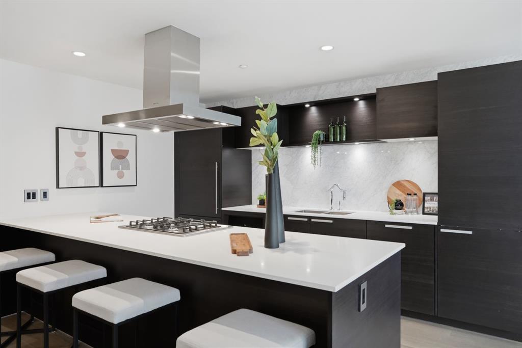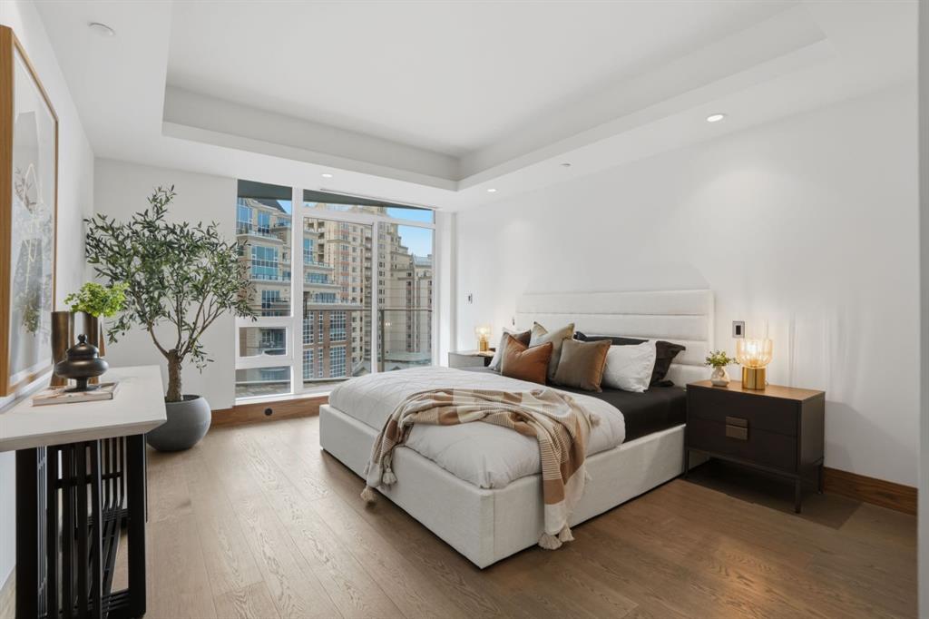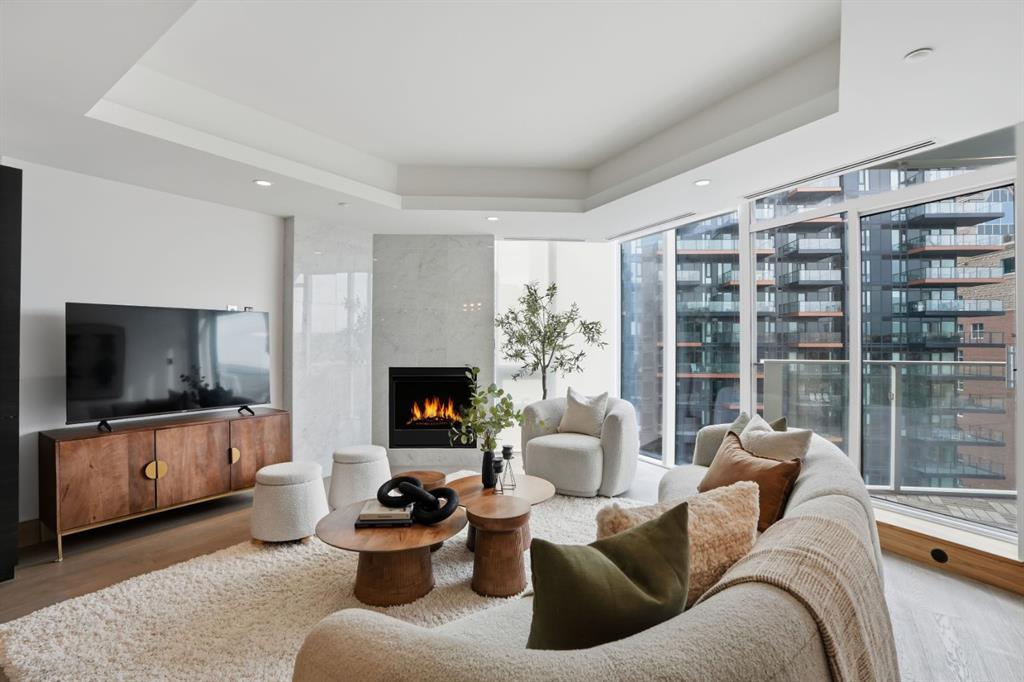 WELCOME TO THE CONCORD - Calgary's most prestigious riverfront residence! Experience unparalleled luxury living in this architectural icon. A private elevator leads you up to your exquisite home, designed with the finest finishes. Enjoy breathtaking Bow River views from floor-to-ceiling windows of Living and each of the Bedrooms. The crafted interior boasts engineered hardwood flooring, a full-height BIANCO STATUARIO marble fireplace, a German POGGENPOHL Kitchen and Miele appliances package. A bright glass door open den is ideal for a home office or a home library. Unwinded in your primary suite boasts a custom walk-in closet, and a 5-piece spa-inspired ensuite, complete with dual sinks, a deep soaker air-jet tub, a separate shower, and heated marble floor. The 2nd bedroom with balcony access has floor-to-ceiling marble 4-piece bath. Additional features include in-suite laundry, 2 titled parking stalls and a titled storage locker. World-Class amenities include: 24-hour Concierge, Fitness Centre, Private Lounge, outdoor water garden, outdoor Kitchen with BBQ, and an automated touch-less car wash! Future amenities include a Resort-style swimming pool and a high-tech golf simulator. CALL TODAY TO SCHEDULE YOUR PRIVATE VIEWING to make this your home!