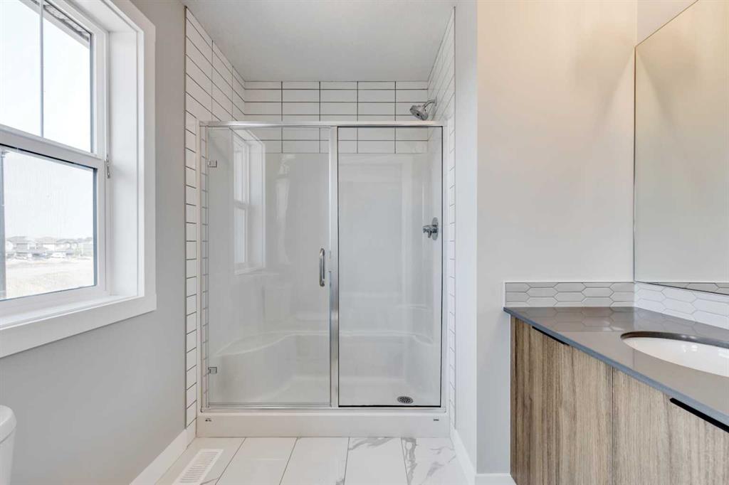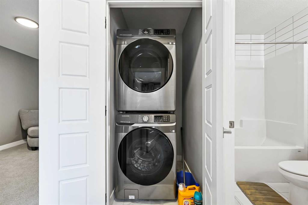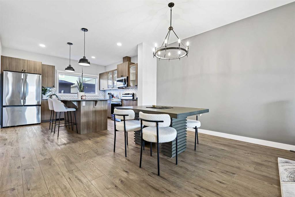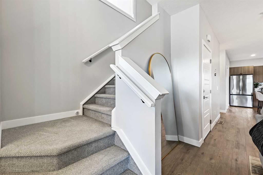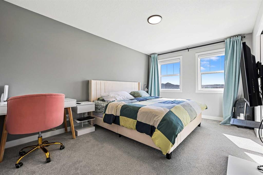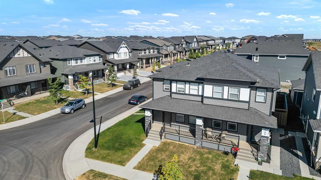 INVESTOR ALERT! Legal Suited Duplex in a prime location across from future park and sports field. Instant add to your portfolio and instant rental income with great tenants in place up and down. This Shane Built attached home features over 2300 sq ft of developed space and high end finishings throughout. As you enter the open concept floorplan you are greeted by luxury vinyl plank flooring throughout the large living room/dining room. Gorgeous kitchen with custom cabinetry, upgraded stainless steel appliances, herringbone subway tile backsplash, large center island, and access door to back deck. Head upstairs to the central bonus room which makes a great kids play area/TV room. Spacious master bedroom with walk-in closet and ensuite bathroom with tile flooring, quartz counters and walk-in shower. Good sized 2nd and 3rd bedrooms with another adjoining full 4-piece bathroom and convenient upper floor laundry complete this well laid out upper floor. Head down to the fully finished legal basement suite with vinyl plank in the living room/dining room. Another stunning kitchen finished to the same quality of the main floor! Spacious bedroom with walk-in closet, adjoining 4-piece bathroom, and separate full-size front-loading laundry.  Additional features include lighting packages from Carrington, Hardie Board exterior, double detached drywalled garage, front veranda, wired for smart home system. No expense was spared for the luxurious upgrades including upgraded flooring throughout, knockdown ceilings, Delta fixtures, lighting, electrical and all appliances. This lovely home is situated across from a purposed park/green space and within walking distance to a new (to be built) school. Legacy is an amazing family community with 2 new purposed schools, along with recreational amenities, 3 ponds, 10 parks, 4 soccer fields, 3 commercial sites and over 300 acres of protected environmental reserve with 15km of interconnected walking trails, amphitheaters and leisure and recreation space along the escarpment plus a short commute to the mountains, Okotoks and a 20 minute drive to DT!