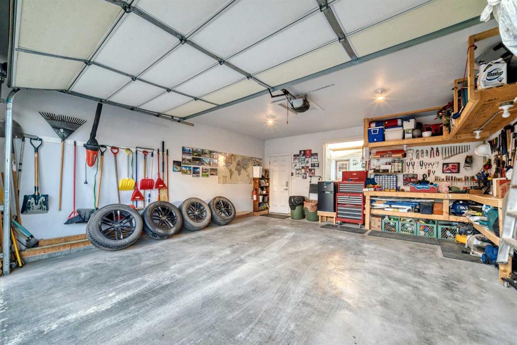Step outside to the low-maintenance, south-facing backyard—your private oasis complete with a large deck, ideal for relaxing or hosting summer barbecues. The double detached garage is insulated, drywalled, and equipped with storage shelving and workbench space, providing excellent functionality. Additional features include a water softener, gas line BBQ hook-up, Vacu-flo system, abundant storage, room-darkening window coverings upstairs, and central air conditioning for year-round comfort.