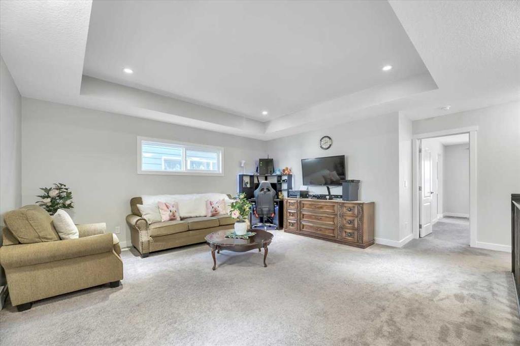 Upstairs, you’ll find three generously sized bedrooms, including a luxurious primary suite complete with a 5-pc spa-inspired ensuite. A spacious bonus room with an upgraded tray ceiling adds versatility for family gatherings or movie nights. The upper-level side-by-side laundry room offers exceptional convenience and ample space.