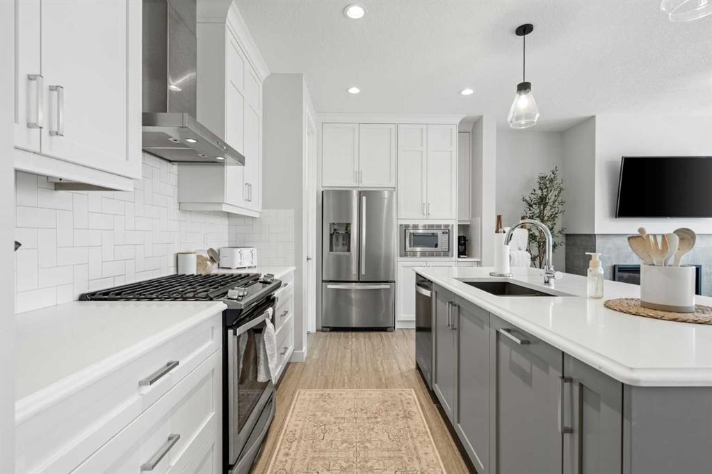 This beautifully maintained 4-bedroom, 3.5-bath home in the heart of Legacy offers over 2,700 sqft of thoughtfully designed living space, seamlessly blending comfort, style, and functionality. Step inside to the open-concept main floor featuring 9-foot ceilings, 8-foot doors, and durable LVP flooring, with a warm and inviting living room centered around a cozy gas fireplace. The chef-inspired kitchen is both elegant and practical, showcasing quartz countertops, eat up breakfast bar, stainless steel appliances, a granite sink, ceiling-height cabinetry, and a walk-through pantry leading to the mudroom—ideal for everyday living and entertaining. Upstairs, three well-appointed bedrooms, a versatile bonus room, and convenient upper-floor laundry create a functional and family-friendly layout. The primary suite offers a true retreat with a luxurious 5-piece en-suite, private toilet room, walk-in closet, and refined finishes. The fully finished basement expands your living space with an additional bedroom, spacious recreation room, and full bathroom. Thoughtful upgrades include air conditioning, a water softener, and professionally installed Gemstone exterior lighting. Outside, the west-facing landscaped backyard is designed for relaxation and hosting, featuring an exposed aggregate patio and private hot tub. Ideally located close to everyday amenities, shopping, schools, and nearby golf courses, this move-in-ready home offers an exceptional lifestyle with comfort and convenience at its core.