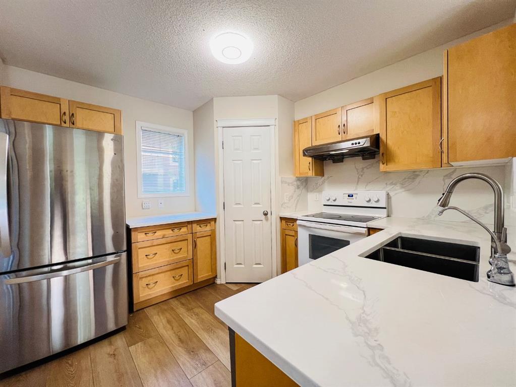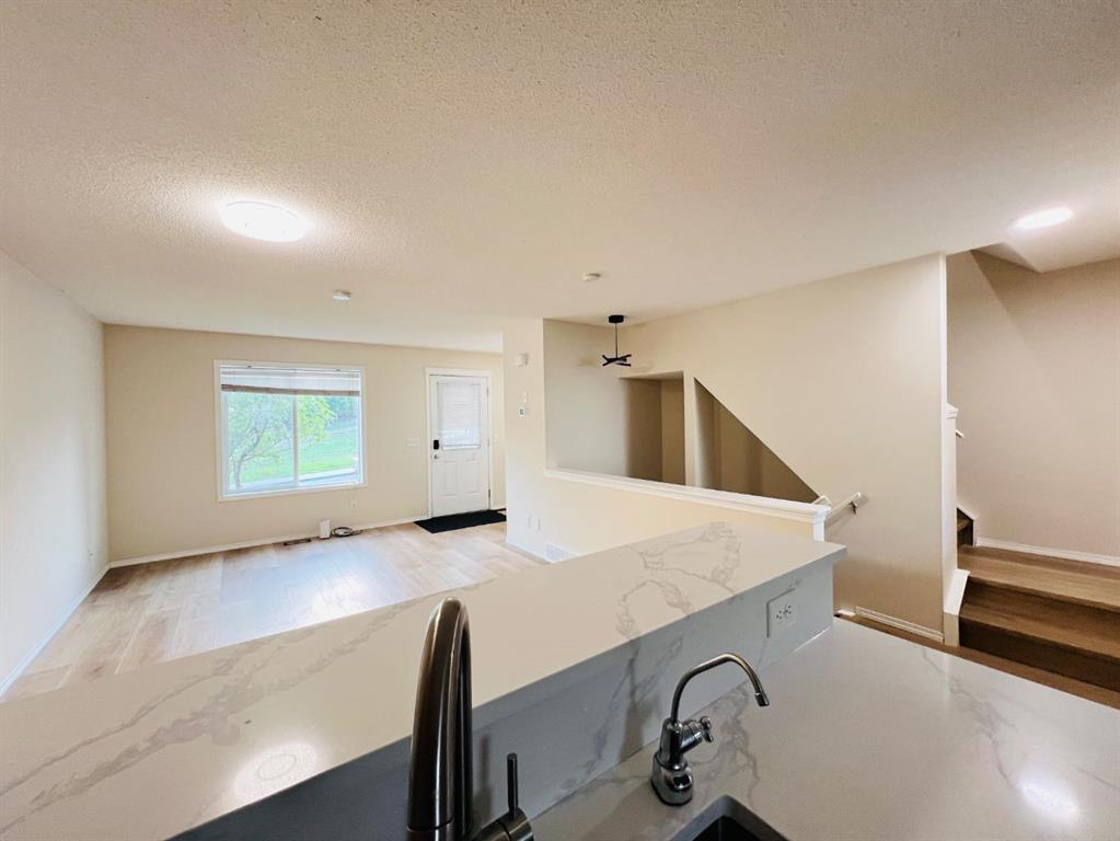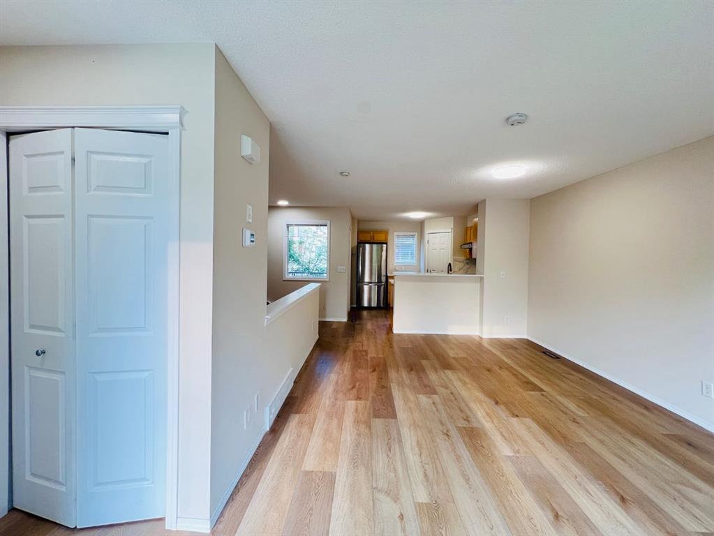 Welcome to 110 Panamount Drive NW! This bright and inviting 3-bedroom, 1.5-bath home has been tastefully updated (2024) with new vinyl plank flooring, kitchen quartz countertops, dishwasher, and a fresh coat of paint throughout. The main level features a functional layout with a spacious living area and a large front window overlooking the beautiful park across the street, which offers plenty of parking. Upstairs offers three comfortable bedrooms, including a generous primary with a cheater ensuite. Enjoy the convenience of a single rear attached insulated garage and. Plenty of parking. Ideally situated in walking distance from shopping centres with Superstores, Homedepot, Canadian Tire, T&T supermarket, banks, schools, VIVO, and a major transit hub, this home offers the perfect blend of comfort and convenience.