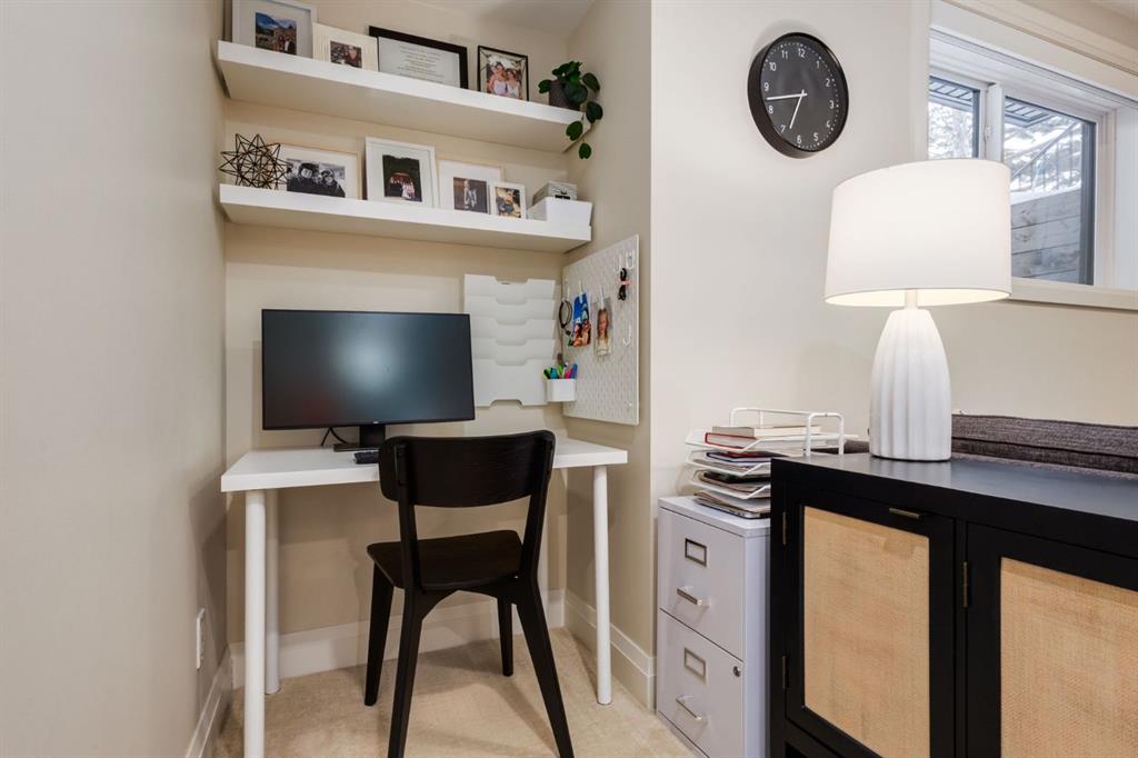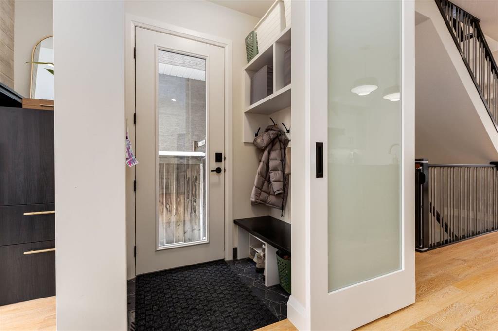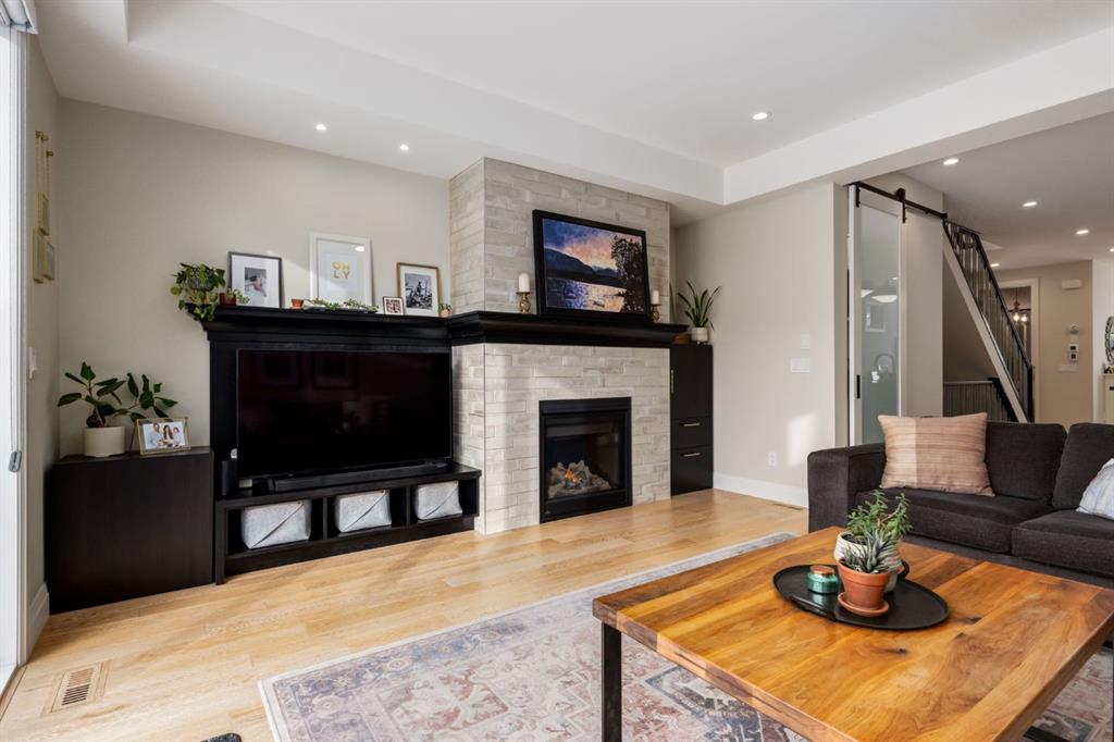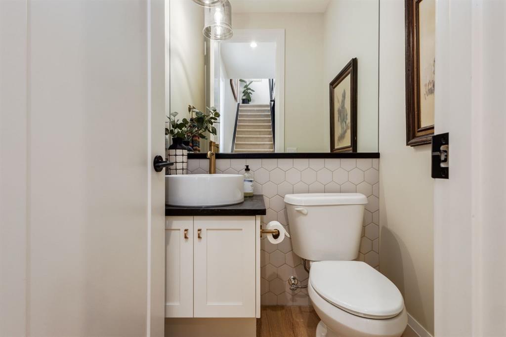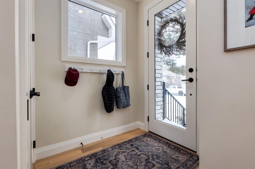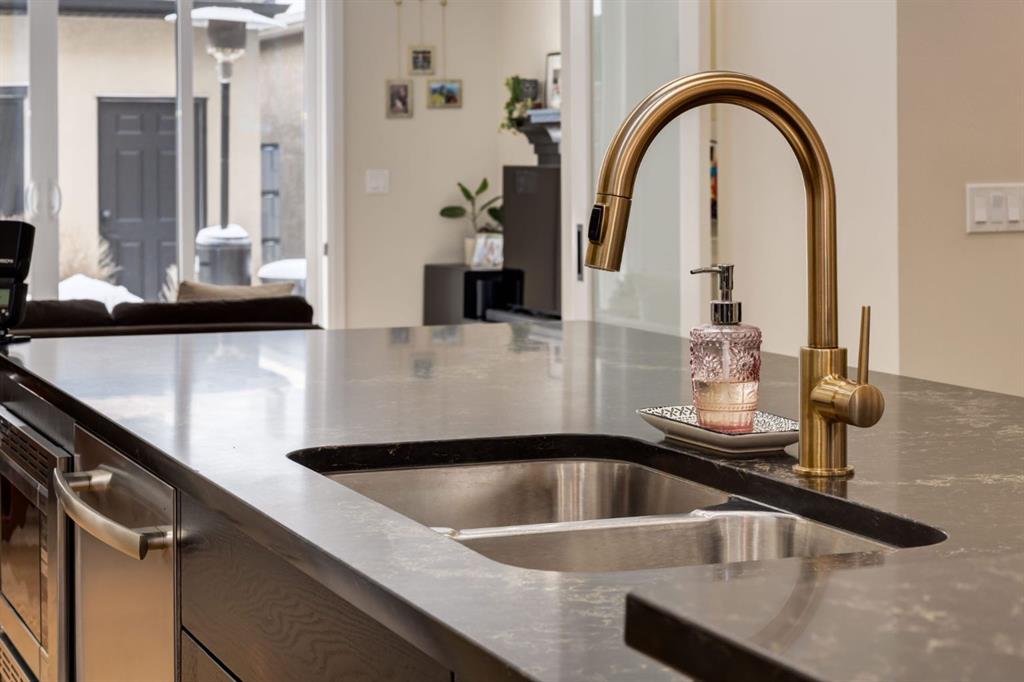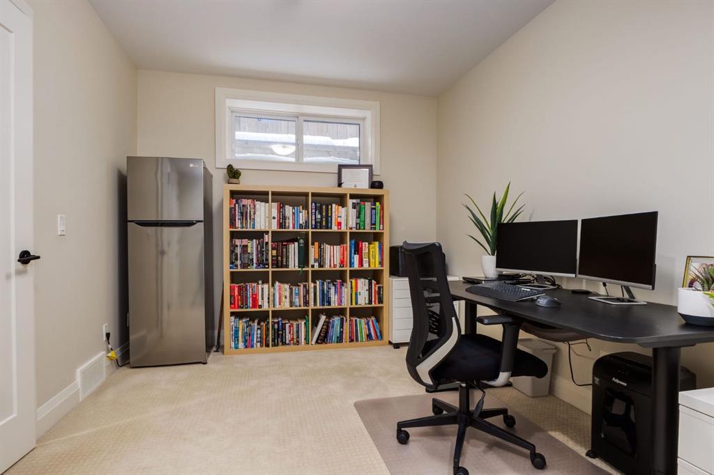 Open House Sun, Feb 22, 2-4pm. Located in highly coveted Shaganappi, this detached home was expertly built with quality in mind, no expense sparred, and a timeless elegance that will never go out of style. This stunning 4-bedroom, 3.5 bath home affords you a luxurious lifestyle and a quick walk to two LRT stations and endless amenities. Ditch the cheap materials used in most modern infills and upgrade to high end supplies including solid wood cabinetry and millwork as well as custom window coverings, central AC, a heated garage, and manicured landscaping including composite decking, mature perennials, and garden beds. As you walk up the front steps, the stunning curb appeal of this home stands out with classic white brick complimented by stone and metal accents. You’re greeted through the entryway into the barely lived in, open concept main floor which boasts engineered wood floors, soaring ceilings, designer lighting, and spectacular natural light through many expansive windows. The massive kitchen is fit for a large family with solid wood cabinetry, a custom range hood, gas stove, enormous kitchen island with bar seating, wine storage, and a pull-out pantry, all of which is accented by designer pendant lighting, ambient wall sconces, and an ageless backsplash. Enjoy family gatherings in your spacious dining room under a spectacular chandelier with mature trees lending privacy outside of the bright front windows. The large living room is flooded with natural light through floor to ceiling glass sliding doors and additional transom windows and is warmed by a striking gas fireplace with subway tile surround, adorned by a crafted mantle. Step outside onto the west facing composite deck to relax and enjoy the sunshine in your private, west facing backyard with landscaping including mature perennials and garden beds. Enjoy a moody mud room with a hexagonal tile accent wall and gold hardware. Rear entry from the garage is possible through your side mud room with built in storage including a bench with hooks, perfect for a bustling family. Enjoy elegant open railings as you ascend to the upper level which includes 3 beautiful skylights and large windows. The primary retreat has vaulted ceilings, west facing windows, and a large walk-in-closet with built-ins. The newly remodelled, luxurious spa-like ensuite showcases a free-standing tub that’s flooded in natural light, dual sinks with tons of extra storage, and a beautifully tiled stand-up shower with bench seating. Upstairs features two generously sized kid’s bedrooms allowing room for larger furniture and space to play. The kids’ bedrooms share a stunning 4-piece bathroom. Enjoy an upstairs laundry room with custom millwork, quartz countertops and tiled backsplash, endless storage, and a must-have sink. Downstairs boast a huge media space with a bespoke wet bar and wine fridge, office space, playroom, and room for guests with an additional large bedroom and a 3 -piece bathroom matching the finishes you’ve come to expect.