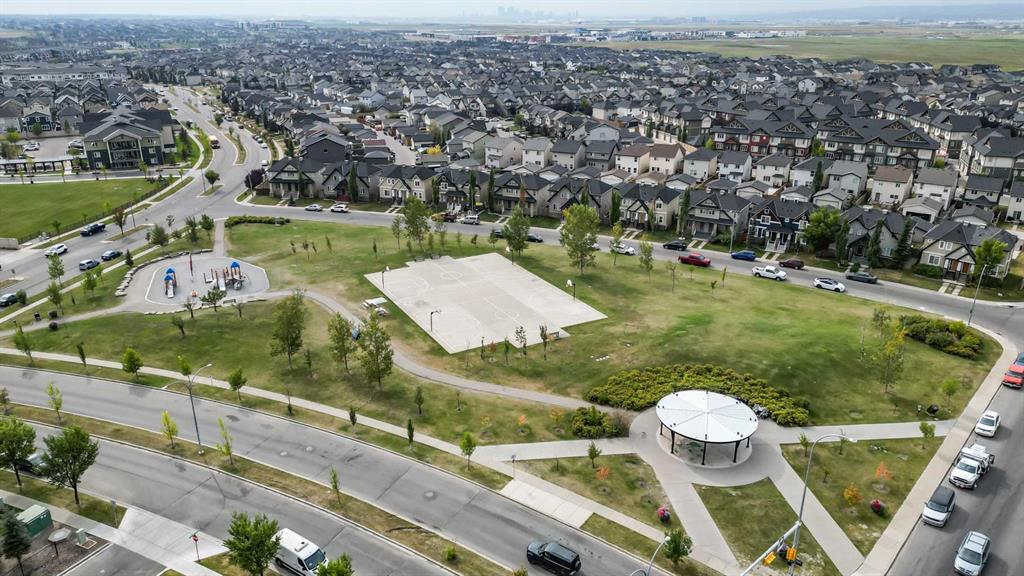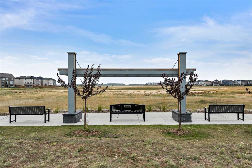 Welcome to this stunning ground floor condo in the heart of Skyview Ranch, offering a luxury modern interior and private outdoor living. Boasting 11 ft ceilings, this bright and airy home features 2 bedrooms, 2 full bathrooms, and a flexible den/home office, perfect for work, nursery, or as a creative space. The open concept kitchen features sleek quartz countertops, stainless steel appliances, white subway tile backsplash and a spacious island (with breakfast bar seating) for casual meals or entertaining friends. The living and dining areas are cozy and inviting, leading to the private backyard (27'4" x 19'7") with aggregate concrete patio (29'7" x 10'2”), a rare find for condo living and sure to be a favourite with children, pets, or friends at summer gatherings. The primary bedroom offers a walk-through closet and elegant 4pc ensuite (with dual sink quartz vanity & glass shower), while the second bedroom has easy access to the main 4pc bath. Enjoy the everyday convenience of in-suite laundry, ample storage and a titled parking stall in the secure, underground parkade for year round comfort. Located just steps from parks, schools, shops and transit, with quick access to Stoney Trail and Deerfoot, this condo is an ideal choice for first time buyers, professionals or downsizers seeking modern living with unbeatable outdoor space. Don’t miss out and book your showing today!