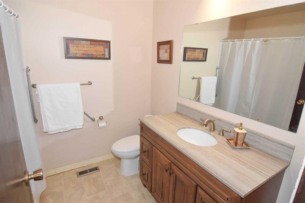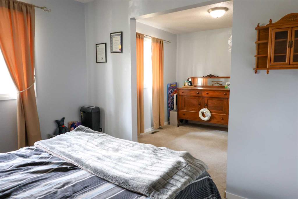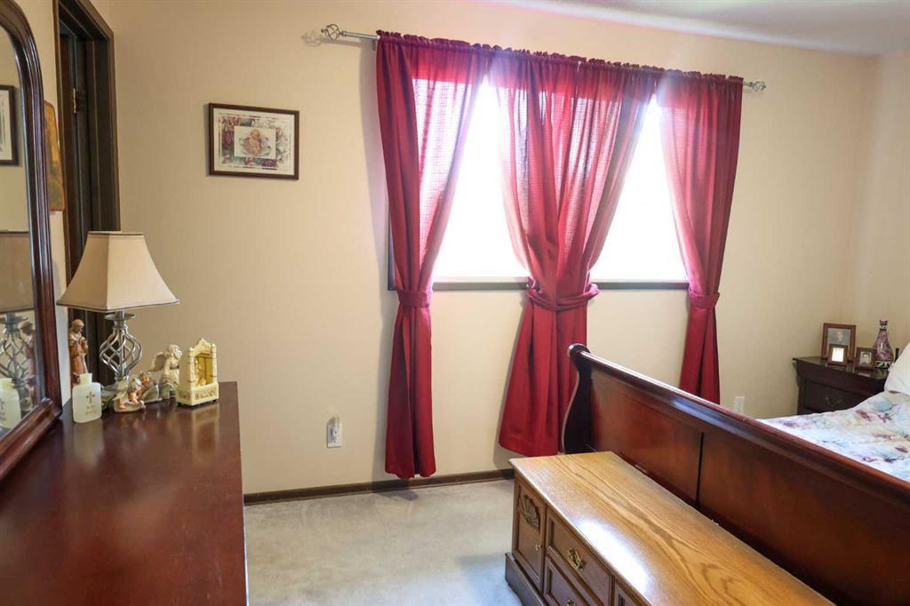Welcome to this well loved and cared for, fully developed, bi-level. Situated on a large reverse pie lot, directly across from the park on a quiet crescent. Features include large, bright L shaped living/dining room combination with feature gas fireplace. Functional kitchen with separate eating area, with access to rear deck. 4 pc. bathroom, 3 bedrooms, master has 2 pc. ensuite . Lower level offers large family room, 2 additional bedrooms, 3 pc. bath and laundry / storage area. The rear yard is fully fenced and the house roof was replaced in 2022. Present owner has lived here for 47 years. This is a great family home. Shopping, schools and transportation all minutes away. Check out this excellent home in the established community of Southwood.